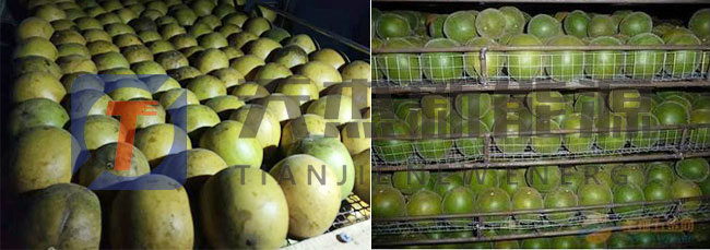 烘干③階段:降溫到55-60度之間,繼續(xù)烘干2天,使果實的重量下降到相當(dāng)鮮果的25-30%即可成為干果。采取關(guān)閉空氣能烘干排濕熱泵系統(tǒng),讓其自然降溫,待冷卻后才能出爐。